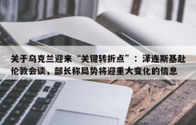 关于乌克兰迎来“关键转折点”:泽连斯基赴伦敦会谈,部长称局势将迎重大变化的信息