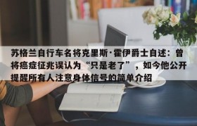 苏格兰自行车名将克里斯·霍伊爵士自述:曾将癌症征兆误认为“只是老了”,如今他公开提醒所有人注意身体信号的简单介绍