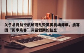 关于易捷航空航班混乱致英国机场瘫痪,旅客因“闹事乘客”滞留假期的信息