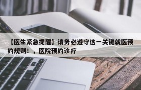 【医生紧急提醒】请务必遵守这一关键就医预约规则!,医院预约诊疗
