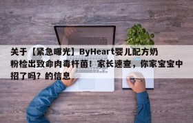 关于【紧急曝光】ByHeart婴儿配方奶粉检出致命肉毒杆菌!家长速查,你家宝宝中招了吗?的信息