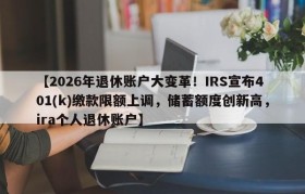 【2026年退休账户大变革!IRS宣布401(k)缴款限额上调,储蓄额度创新高,ira个人退休账户】