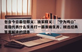 包含今日最佳释义:独家释义:“宁为鸡口”是指代表什么生肖打一最准确生肖,精选经典答案解读的词条