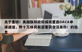 关于重磅!美国联邦政府或将重启DACA申请通道,数十万移民有望重获合法身份!的信息