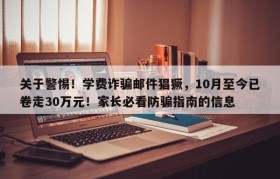 关于警惕!学费诈骗邮件猖獗,10月至今已卷走30万元!家长必看防骗指南的信息