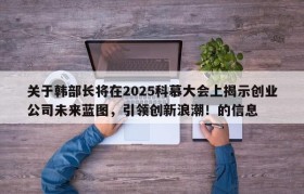 关于韩部长将在2025科慕大会上揭示创业公司未来蓝图,引领创新浪潮!的信息