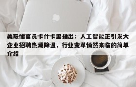 美联储官员卡什卡里指出:人工智能正引发大企业招聘热潮降温,行业变革悄然来临的简单介绍