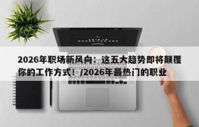 2026年职场新风向:这五大趋势即将颠覆你的工作方式!/2026年最热门的职业