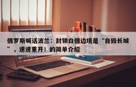 俄罗斯喊话波兰:封锁白俄边境是“自毁长城”,速速重开!的简单介绍