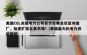 美国CEL关键电力公司首次在弗吉尼亚州建厂,加速扩张北美市场!/美国最大的电力供应基地