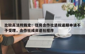比较高法院裁定:住房合作社退税逾期申请不予受理,合作社成员退社程序
