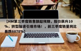 【HM第三季度销售额超预期,股价飙升10%,转型加速引爆市场!,前三季度销量同比暴跌6078%】