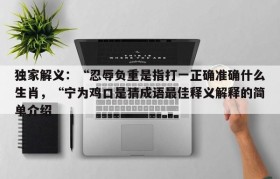 独家解义:“忍辱负重是指打一正确准确什么生肖,“宁为鸡口是猜成语最佳释义解释的简单介绍