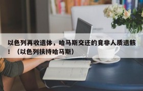 以色列再收遗体,哈马斯交还的竟非人质遗骸!(以色列扶持哈马斯)