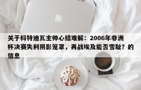 关于科特迪瓦主帅心结难解:2006年非洲杯决赛失利阴影笼罩,再战埃及能否雪耻?的信息