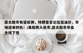亚太股市有望反弹,特朗普言论压低油价,市场迎来转机!/美股跌入熊市,亚太股市早盘全线下挫