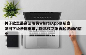 关于欧盟最高法院将WhatsApp隐私案发回下级法庭重审,隐私权之争再起波澜的信息