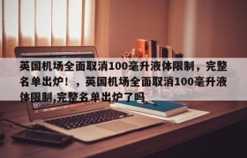 英国机场全面取消100毫升液体限制,完整名单出炉!,英国机场全面取消100毫升液体限制,完整名单出炉了吗