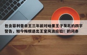 包含菲利普亲王三年前对哈里王子发出的四字警告,如今梅根退出王室风波应验!的词条