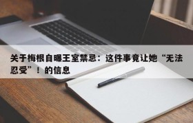 关于梅根自曝王室禁忌:这件事竟让她“无法忍受”!的信息
