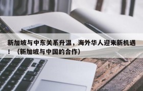 新加坡与中东关系升温,海外华人迎来新机遇!(新加坡与中国的合作)