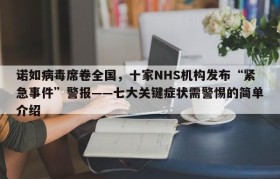 诺如病毒席卷全国,十家NHS机构发布“紧急事件”警报——七大关键症状需警惕的简单介绍