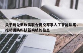 关于跨党派议员联合提交军事人工智能法案,推动国防科技新突破的信息