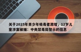 关于2025年青少年吸毒者激增,12岁儿童涉案被捕:中央禁毒局警示的信息