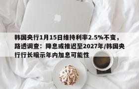 韩国央行1月15日维持利率2.5%不变,路透调查:降息或推迟至2027年/韩国央行行长暗示年内加息可能性