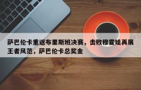 萨巴伦卡重返布里斯班决赛,击败穆霍娃再展王者风范,萨巴伦卡总奖金