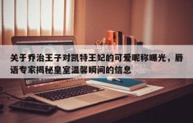 关于乔治王子对凯特王妃的可爱昵称曝光,唇语专家揭秘皇室温馨瞬间的信息