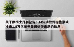 关于摩根士丹利警告:AI驱动软件抛售潮或冲击1.5万亿美元美国信贷市场的信息