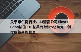 关于华尔街日报:AI语音公司ElevenLabs估值110亿美元融资5亿美元,创行业新高的信息