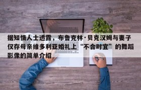 据知情人士透露,布鲁克林·贝克汉姆与妻子仅存母亲维多利亚婚礼上“不合时宜”的舞蹈影像的简单介绍