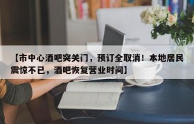 【市中心酒吧突关门,预订全取消!本地居民震惊不已,酒吧恢复营业时间】