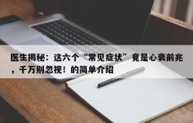 医生揭秘:这六个“常见症状”竟是心衰前兆,千万别忽视!的简单介绍