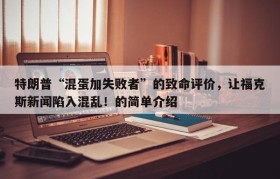 特朗普“混蛋加失败者”的致命评价,让福克斯新闻陷入混乱!的简单介绍