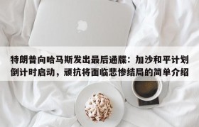 特朗普向哈马斯发出最后通牒:加沙和平计划倒计时启动,顽抗将面临悲惨结局的简单介绍