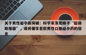 关于男性避孕新突破:科学家发现精子“超级助推器”,或将催生首款男性口服避孕药的信息