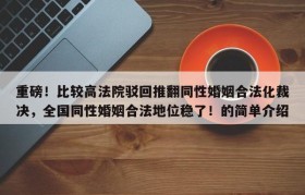 重磅!比较高法院驳回推翻同性婚姻合法化裁决,全国同性婚姻合法地位稳了!的简单介绍