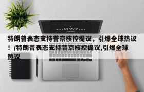 特朗普表态支持普京核控提议,引爆全球热议!/特朗普表态支持普京核控提议,引爆全球热议
