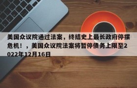 美国众议院通过法案,终结史上最长政府停摆危机!,美国众议院法案将暂停债务上限至2022年12月16日