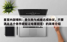 皇室内部爆料:查尔斯与威廉达成协议,只要满足这个条件就能让哈里回家!的简单介绍