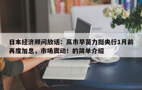 日本经济顾问放话:高市早苗力挺央行1月前再度加息,市场震动!的简单介绍