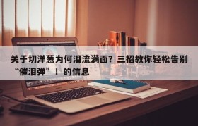我问你一个问题:剥洋葱和切洋葱为什么会辣眼睛?用俗语解释 1、剥洋葱和切洋葱会辣眼睛,主要是因为洋葱...
