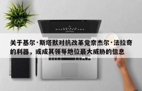 关于基尔·斯塔默对抗改革党奈杰尔·法拉奇的利器,或成其领导地位最大威胁的信息