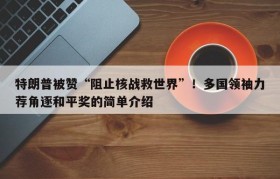 特朗普被赞“阻止核战救世界”!多国领袖力荐角逐和平奖的简单介绍