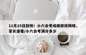 11月25日放榜!小六会考成绩即将揭晓,家长速看/小六会考是什么意思