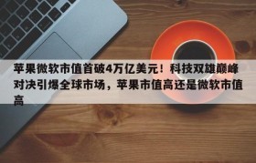 苹果微软市值首破4万亿美元!科技双雄巅峰对决引爆全球市场,苹果市值高还是微软市值高