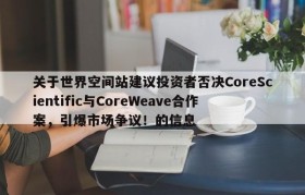 关于世界空间站建议投资者否决CoreScientific与CoreWeave合作案,引爆市场争议!的信息